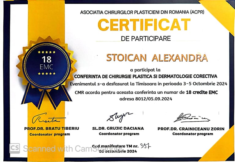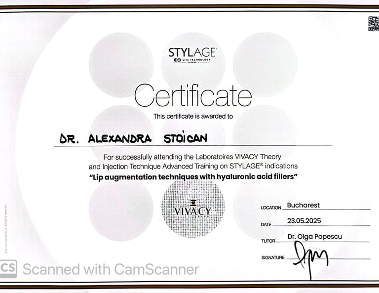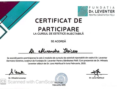 2024 - prezent: Pregătire avansată la Centrul Medical Dr. Mihălceanu sub îndrumarea doamnei Dr. Mihăița Mihălceanu în: